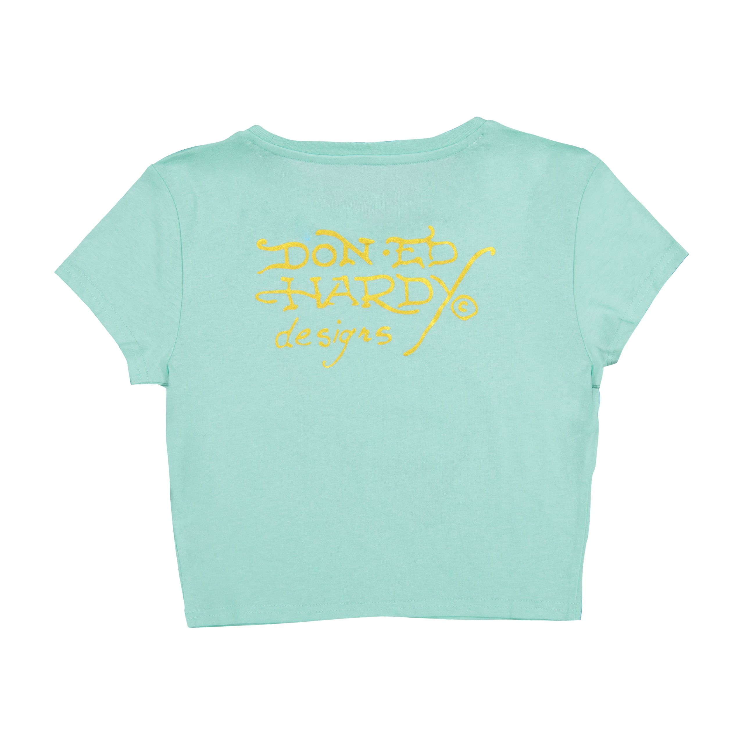 Our classic baby tee silhouette featuring an archival hand heart graphic and gold Ed Hardy logos. Constructed from a soft cotton blend.