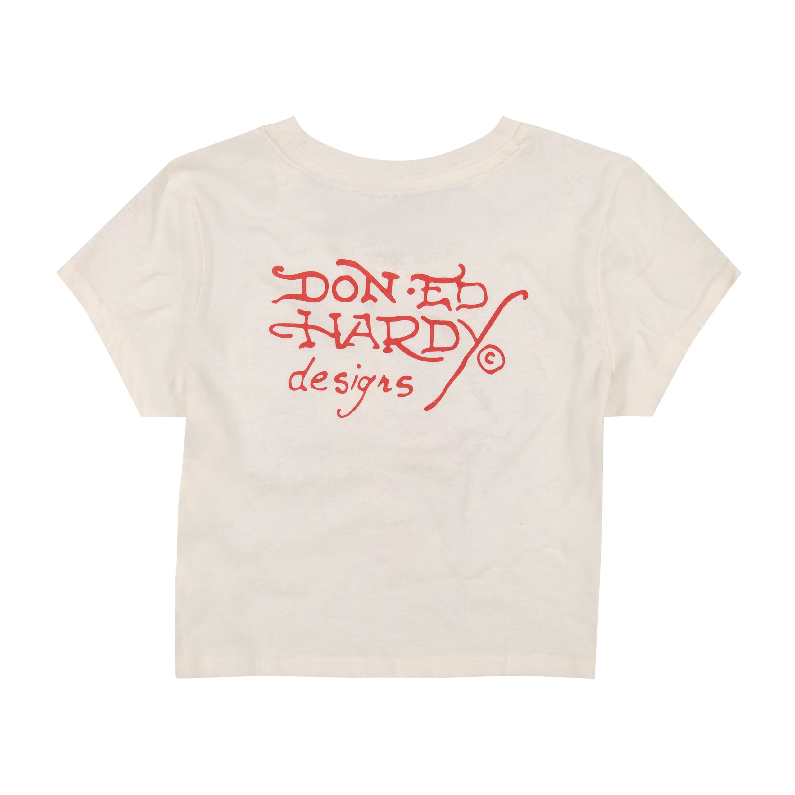 Our classic baby tee silhouette featuring an archival cross heart graphic and red Ed Hardy logos. Constructed from a soft cotton blend.