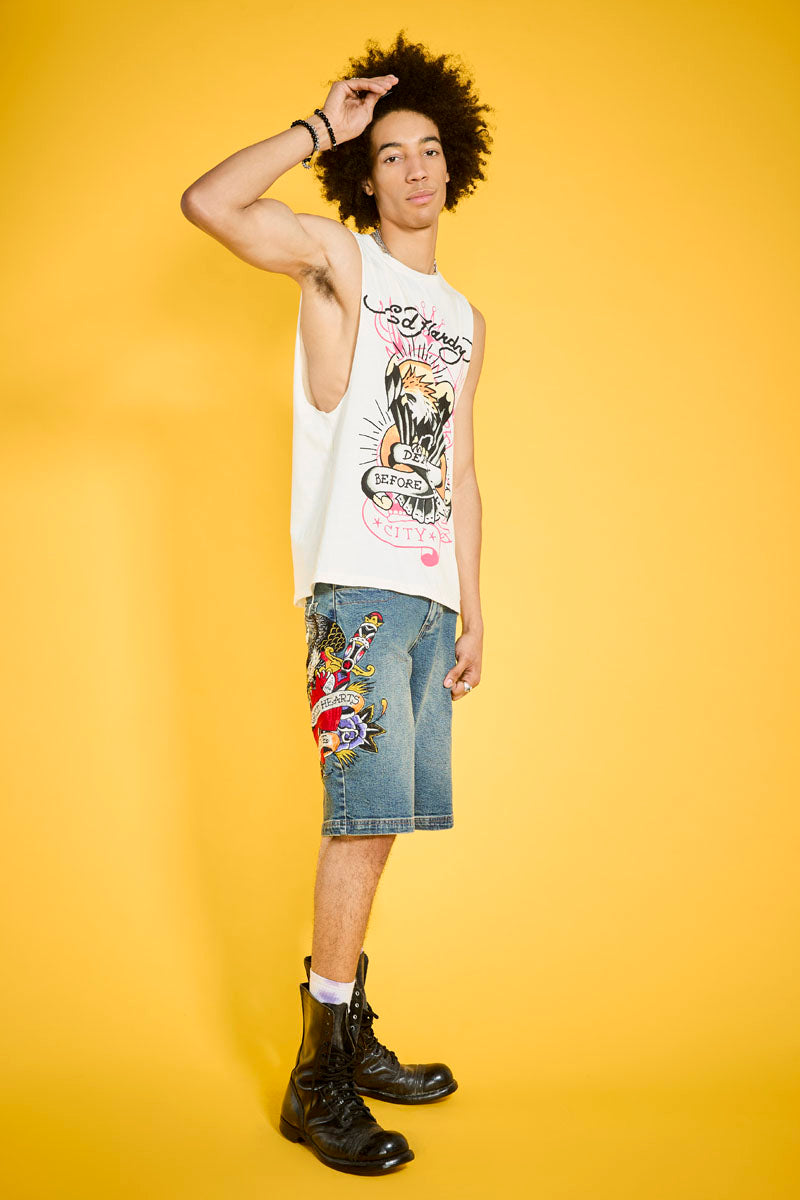 This cut off tee is constructed from a soft cotton blend. Complete with an archival Death Before Dishonor Eagle graphic and two signature logos.