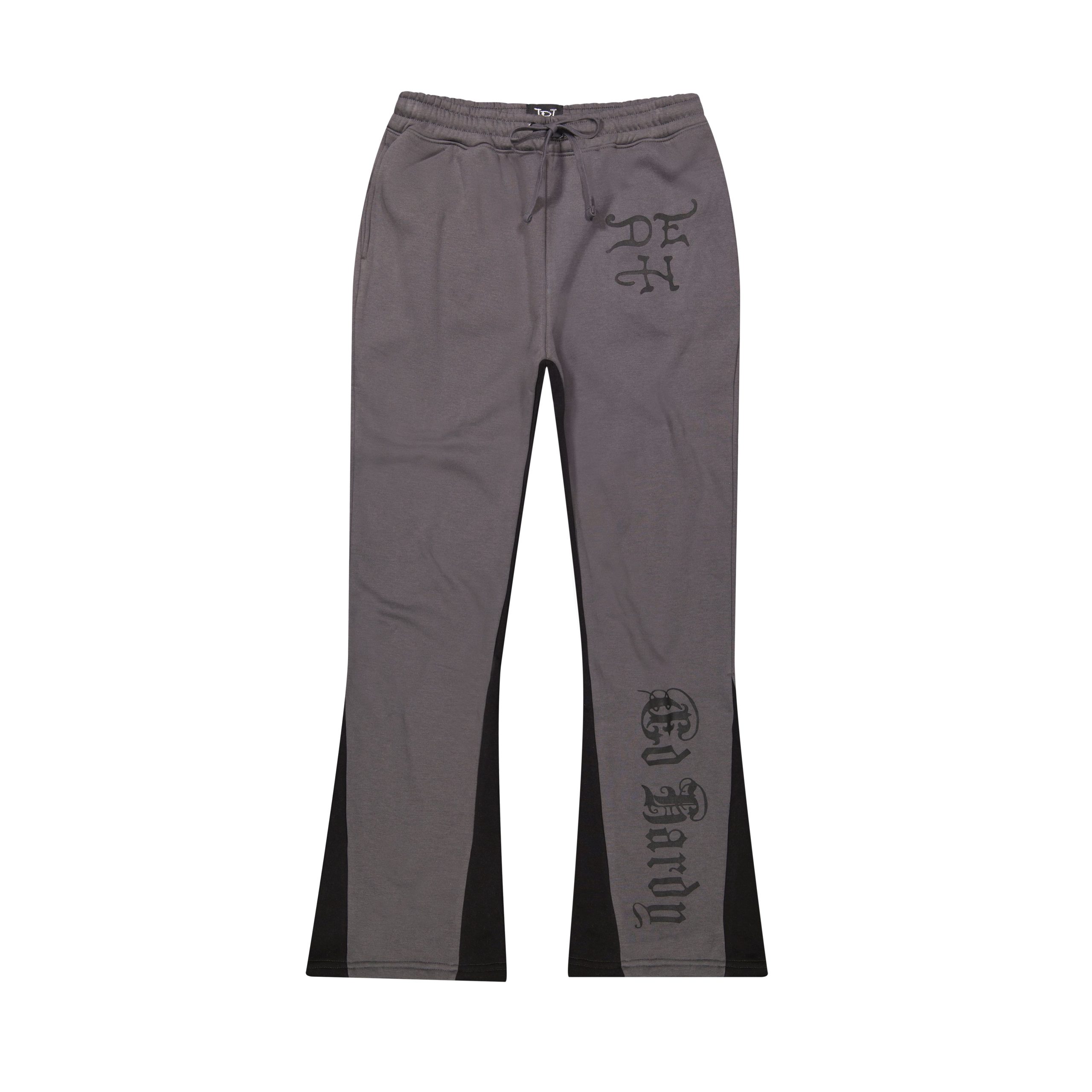 These bootcut sweatpants are constructed from color blocked charcoal and black fleece. Complete with archival Ed Hardy logos and Dragon Flame artwork.