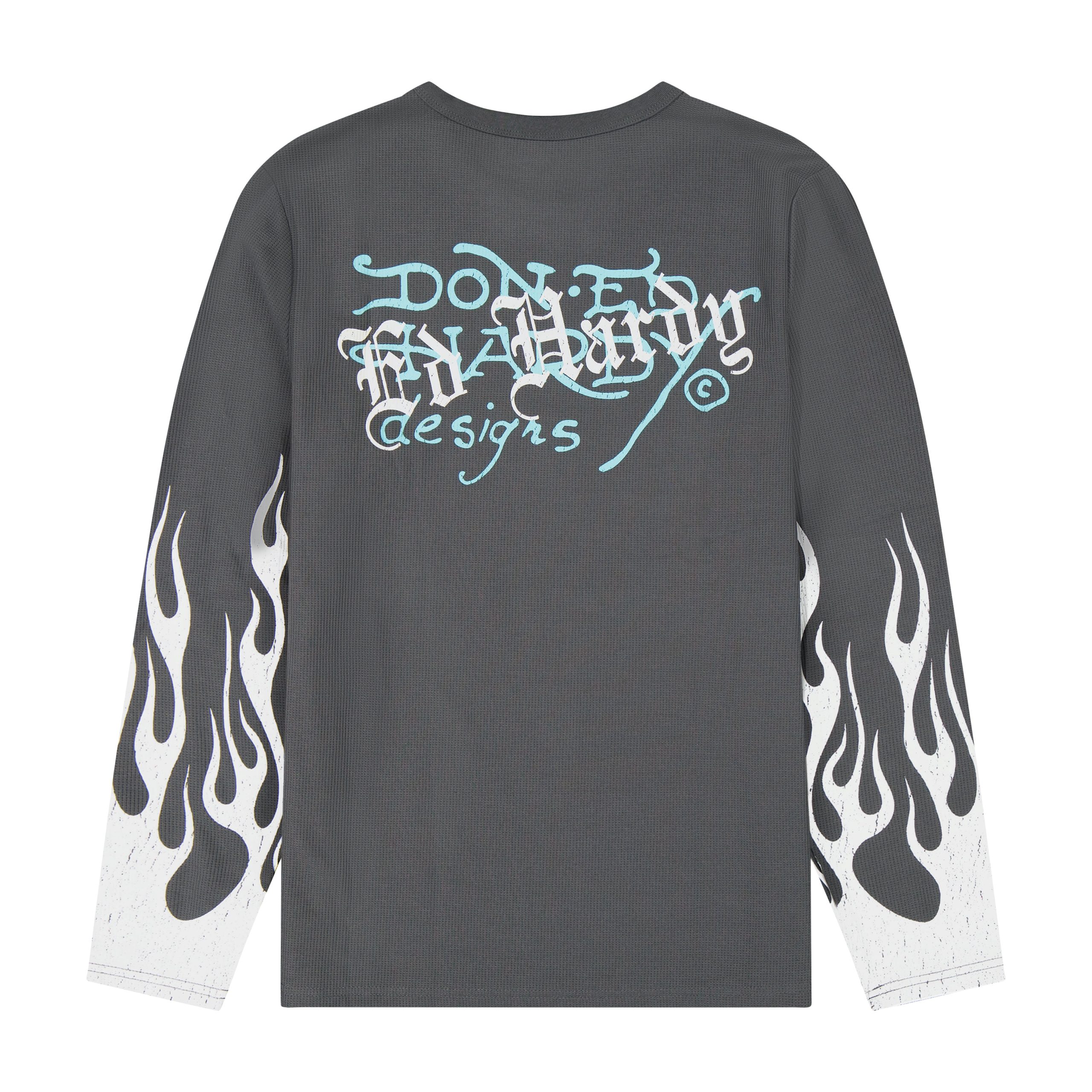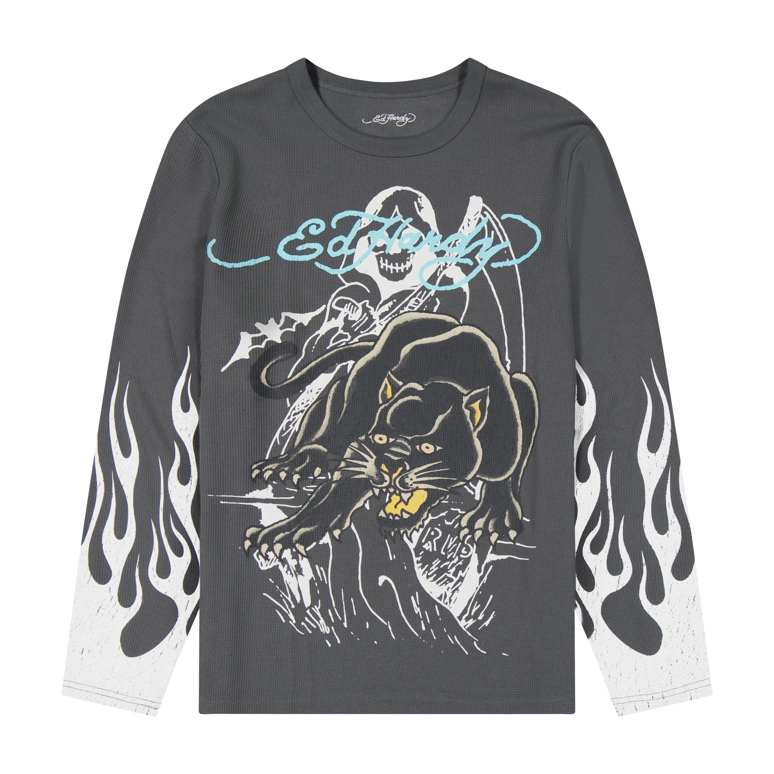 This thermal long sleeve features flame graphics on the sleeves and a signature Ed Hardy panther. Complete with layered Ed Hardy logos.