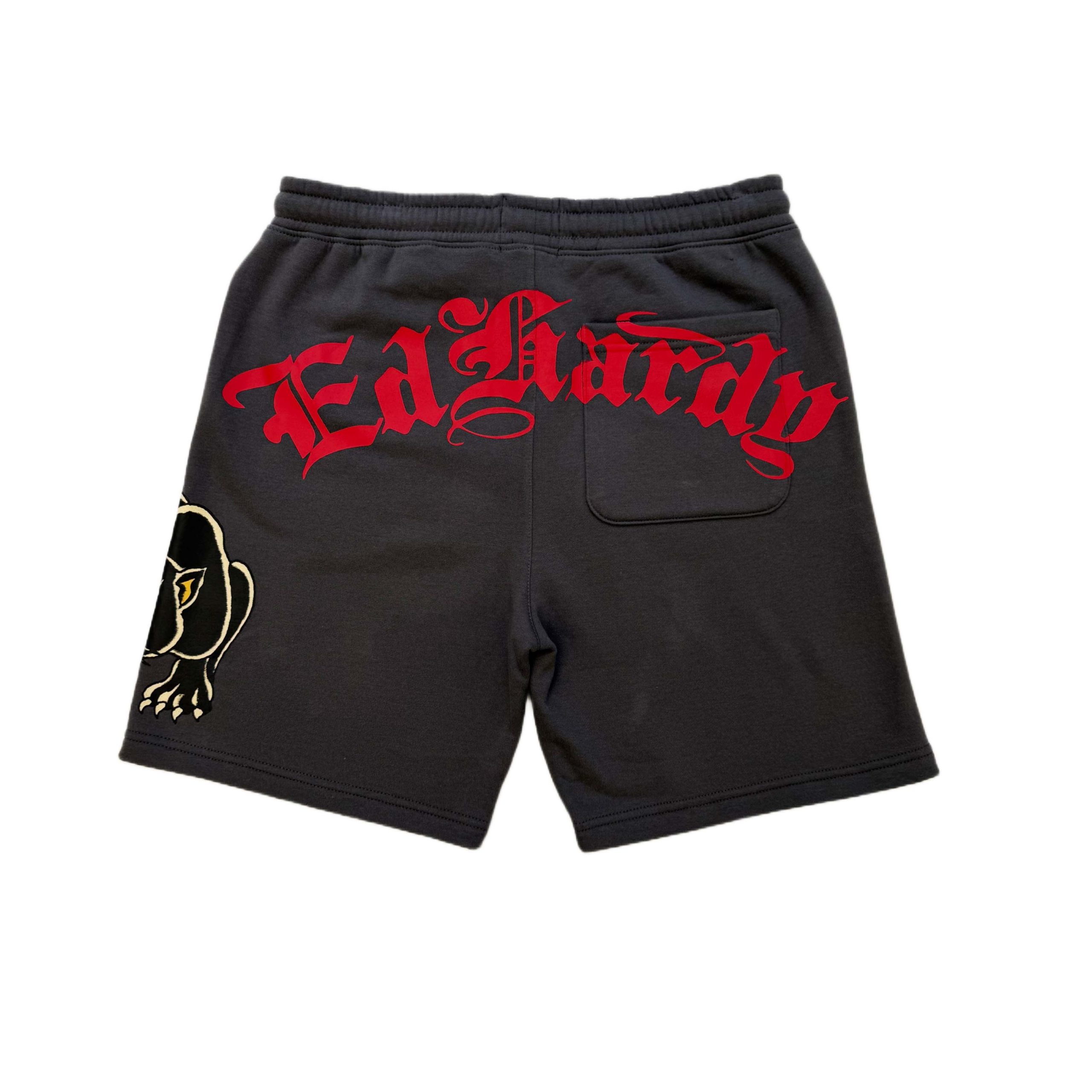 Ultra soft cotton blend fleece shorts featuring an adjustable drawstring. Complete with a signature Ed Hardy panther skull graphic and multiple archival logos.